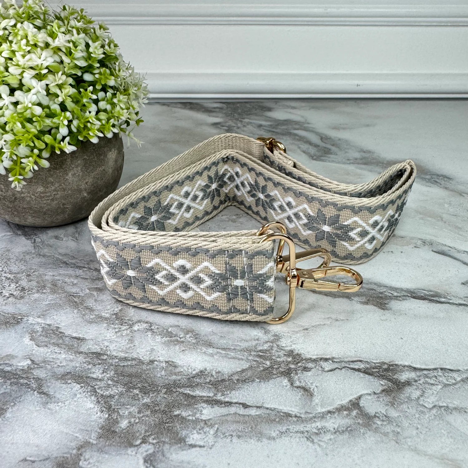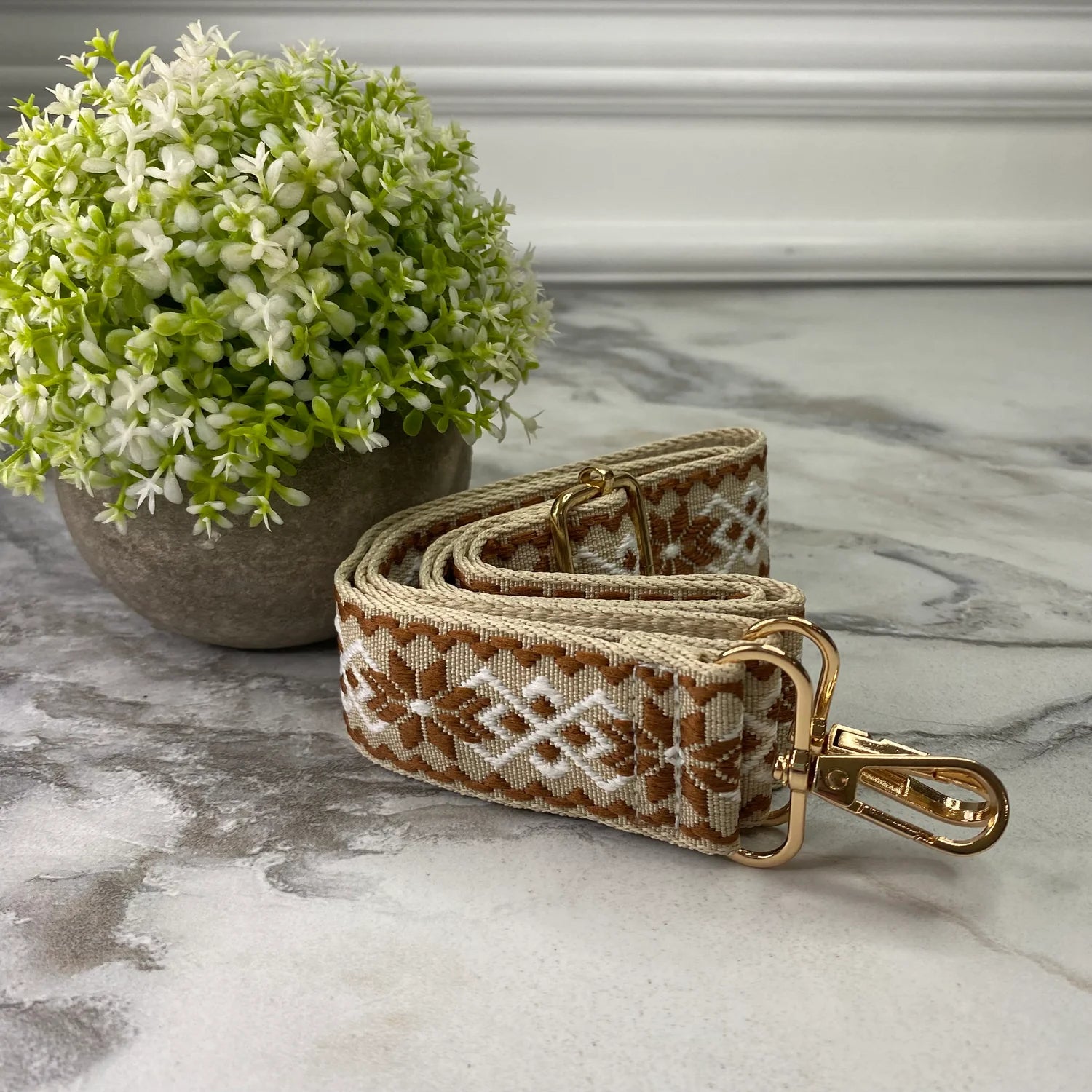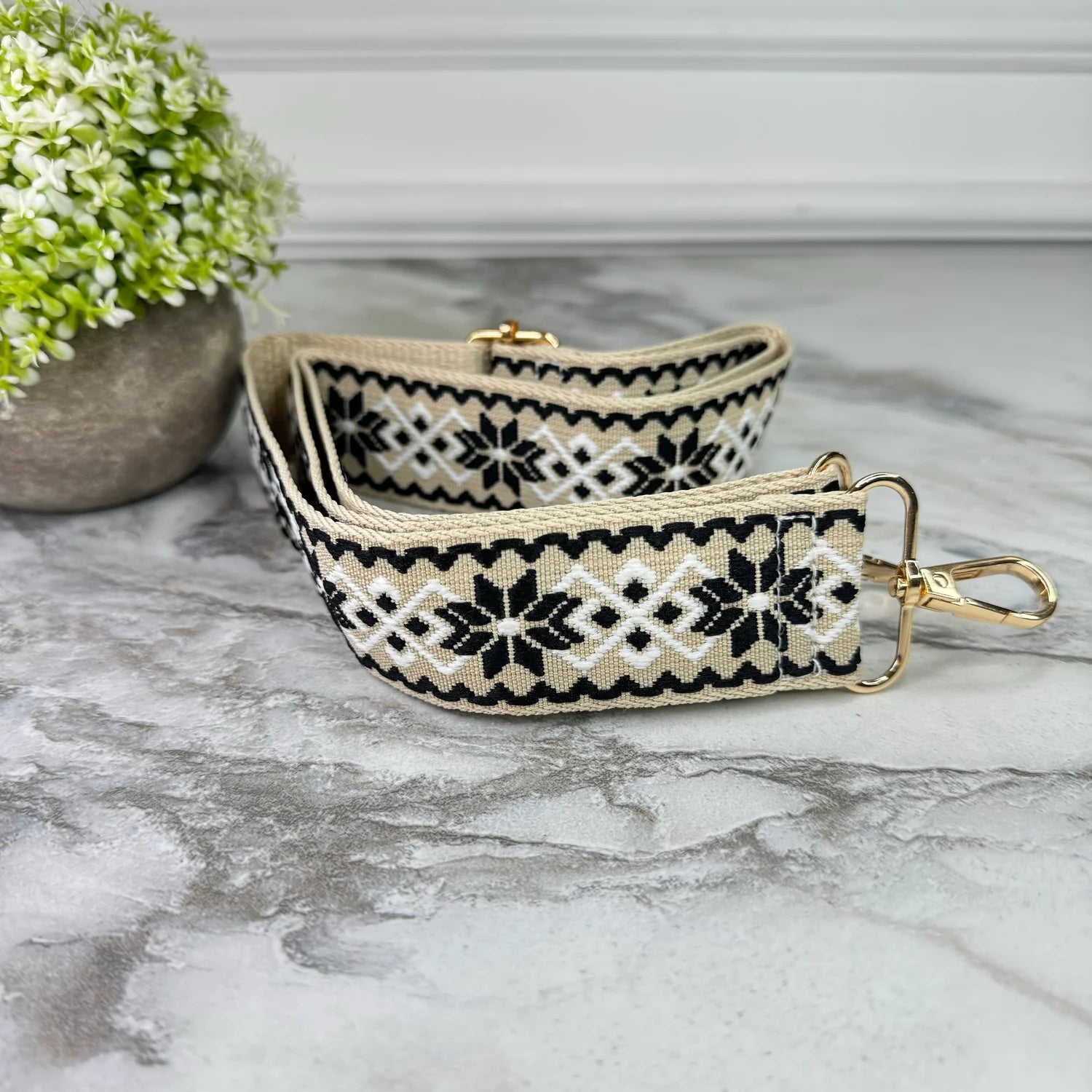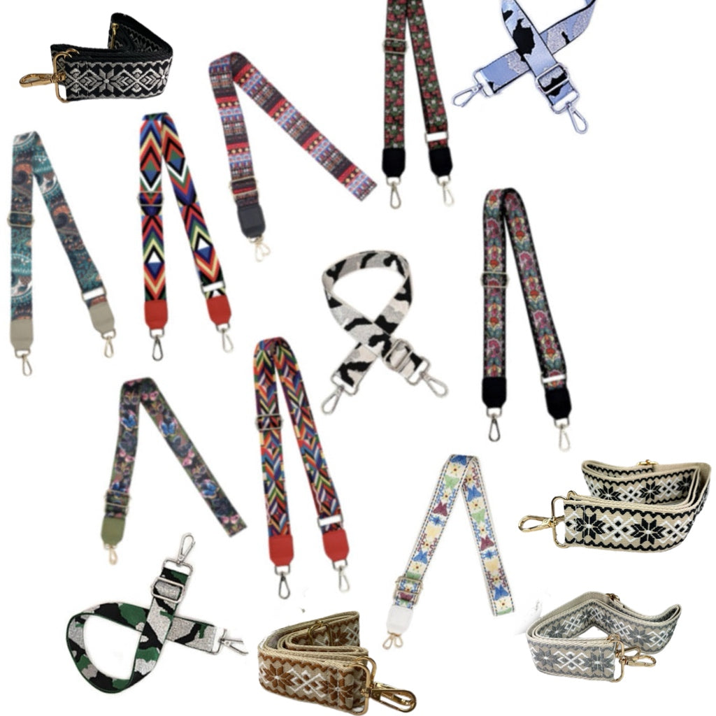 Adjustable Printed Bag Straps. These straps are the perfect way to customize your favorite handbag (separate purchase). Mix and match the colors and prints to make your own unique statement. - Straps vary slightly in length and adjust to the longest point at approximately 47"- 51" long. Straps are approximately 1.5" wide - 100% Polyester
