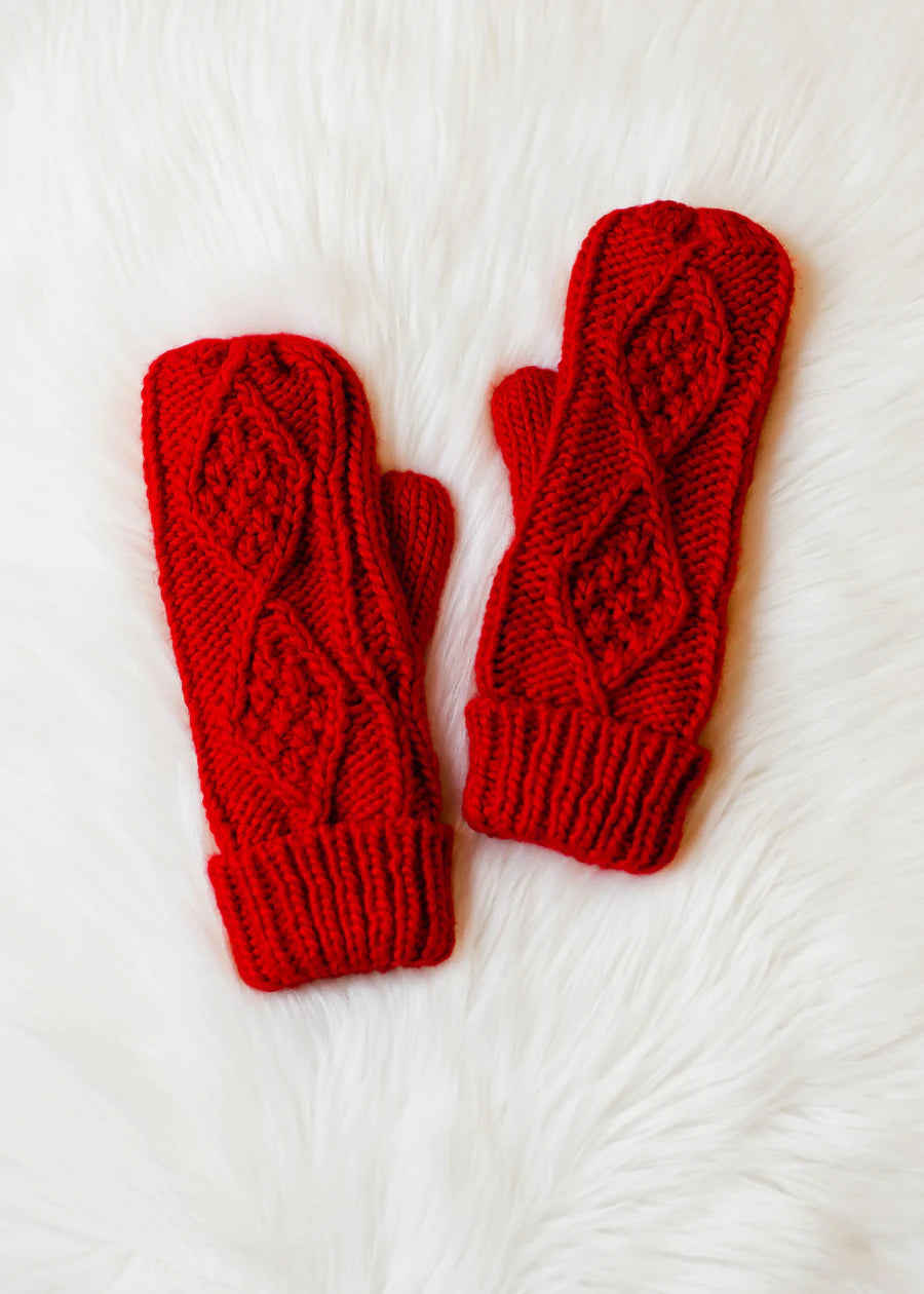 Red Cable Knit Mittens – Bold, Cozy, and Winter-Ready