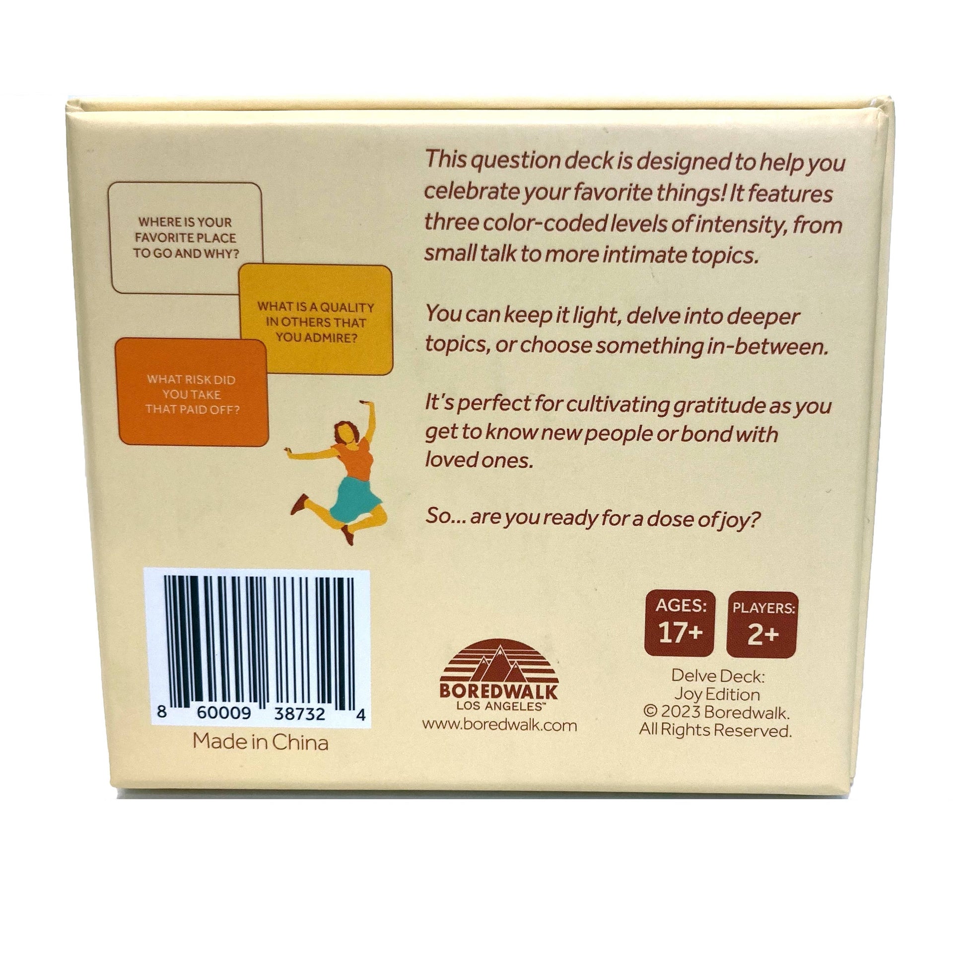 Keywords: Joy Edition conversation deck, gratitude prompts, deep conversation starters, joy and connection cards, mindfulness tools, intentional conversation game, meaningful connection deck.