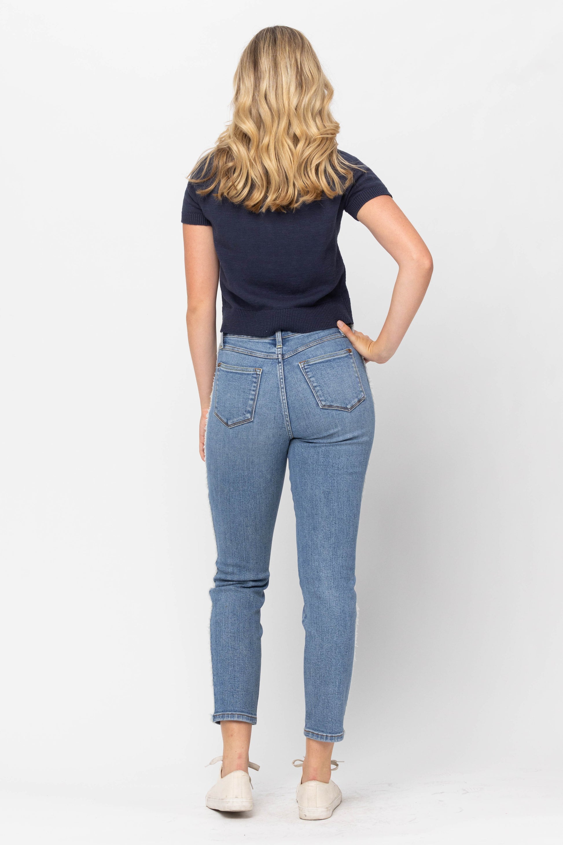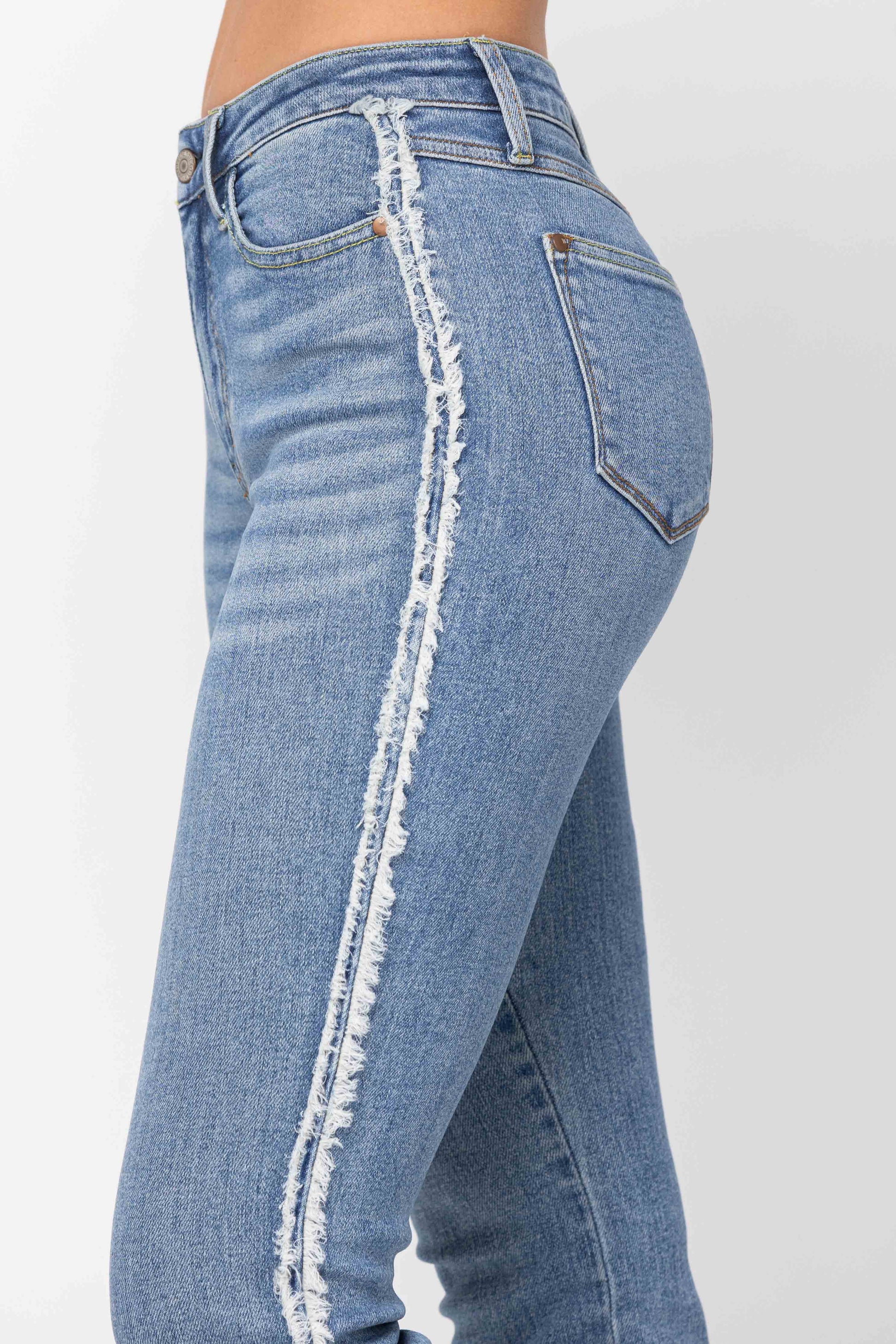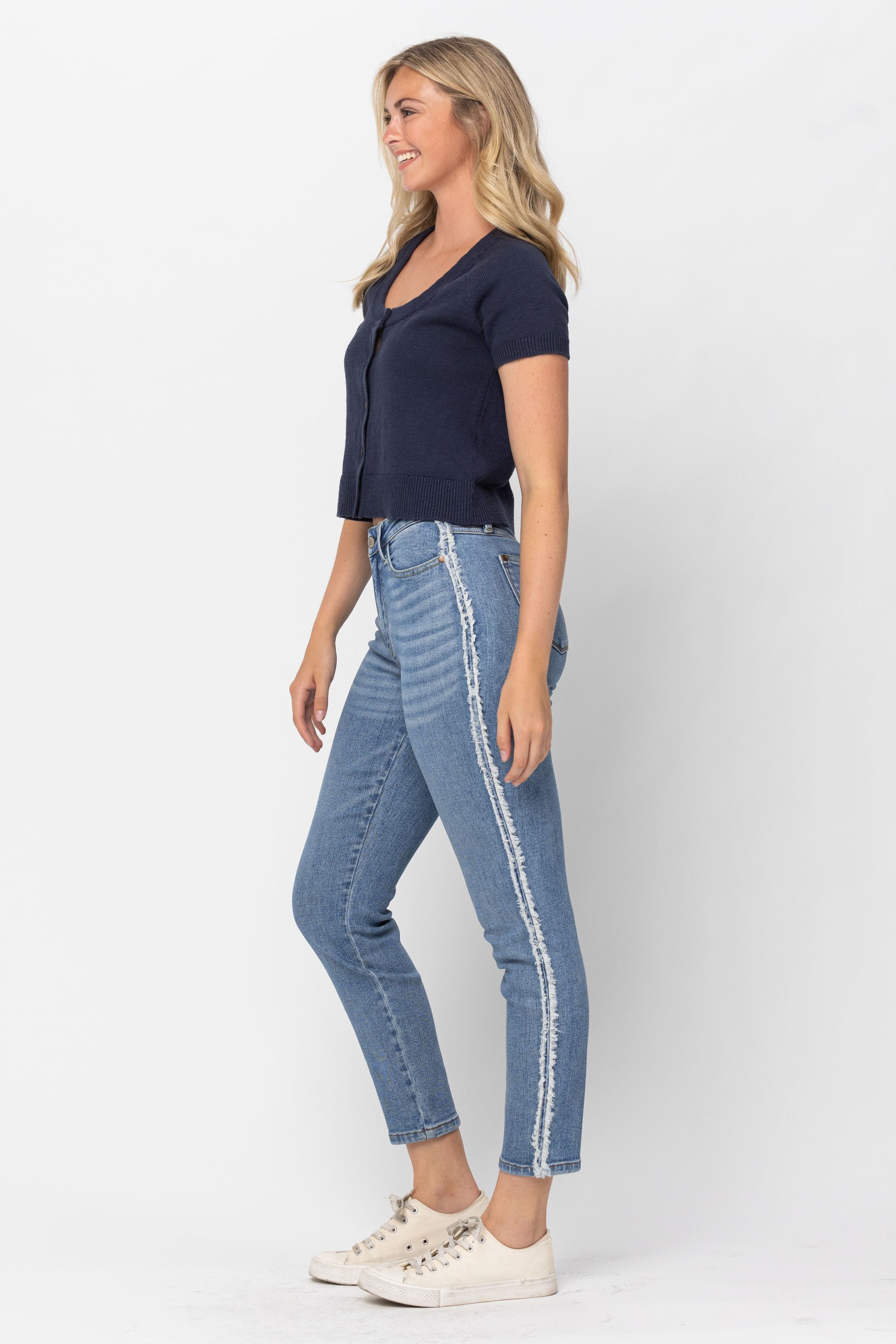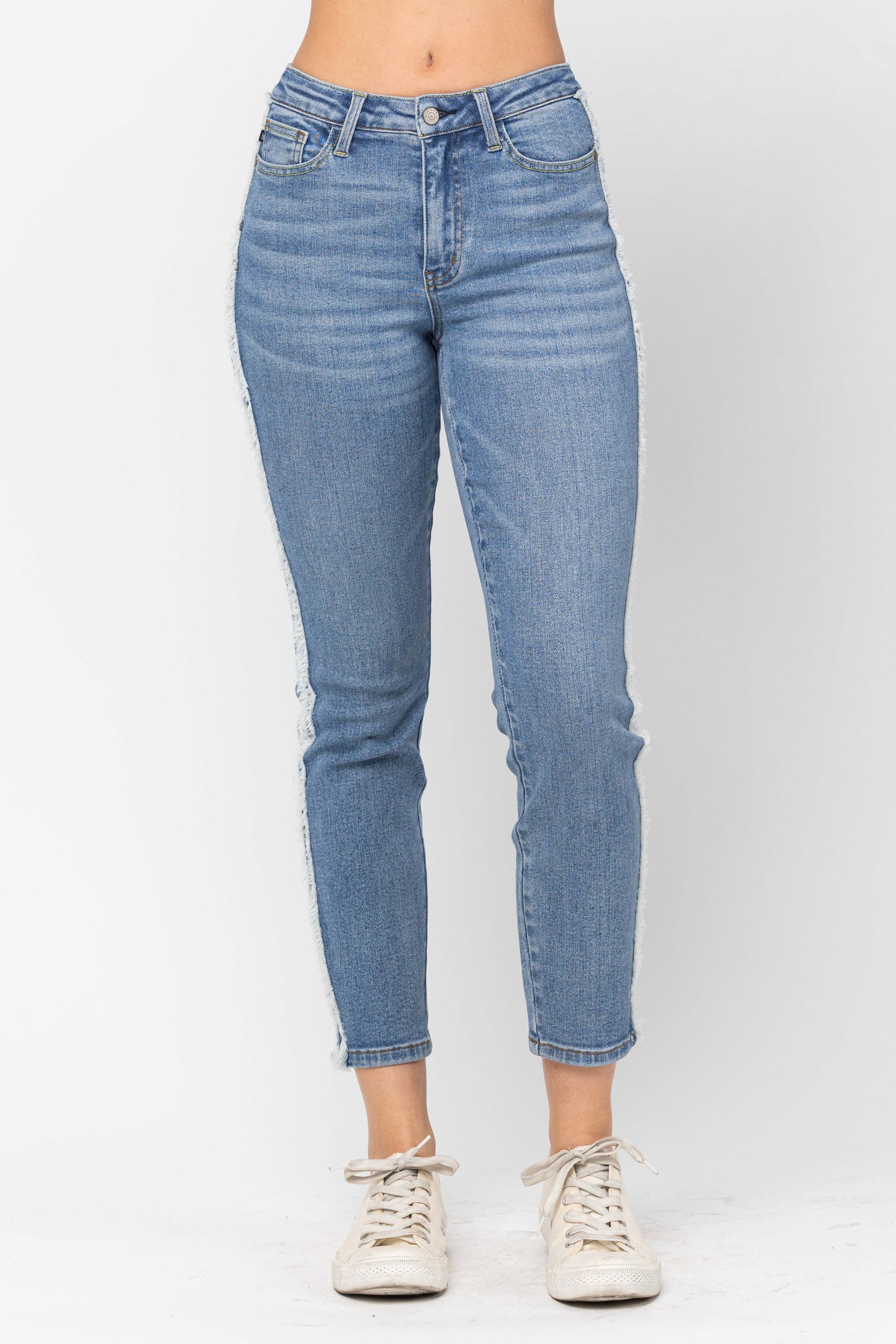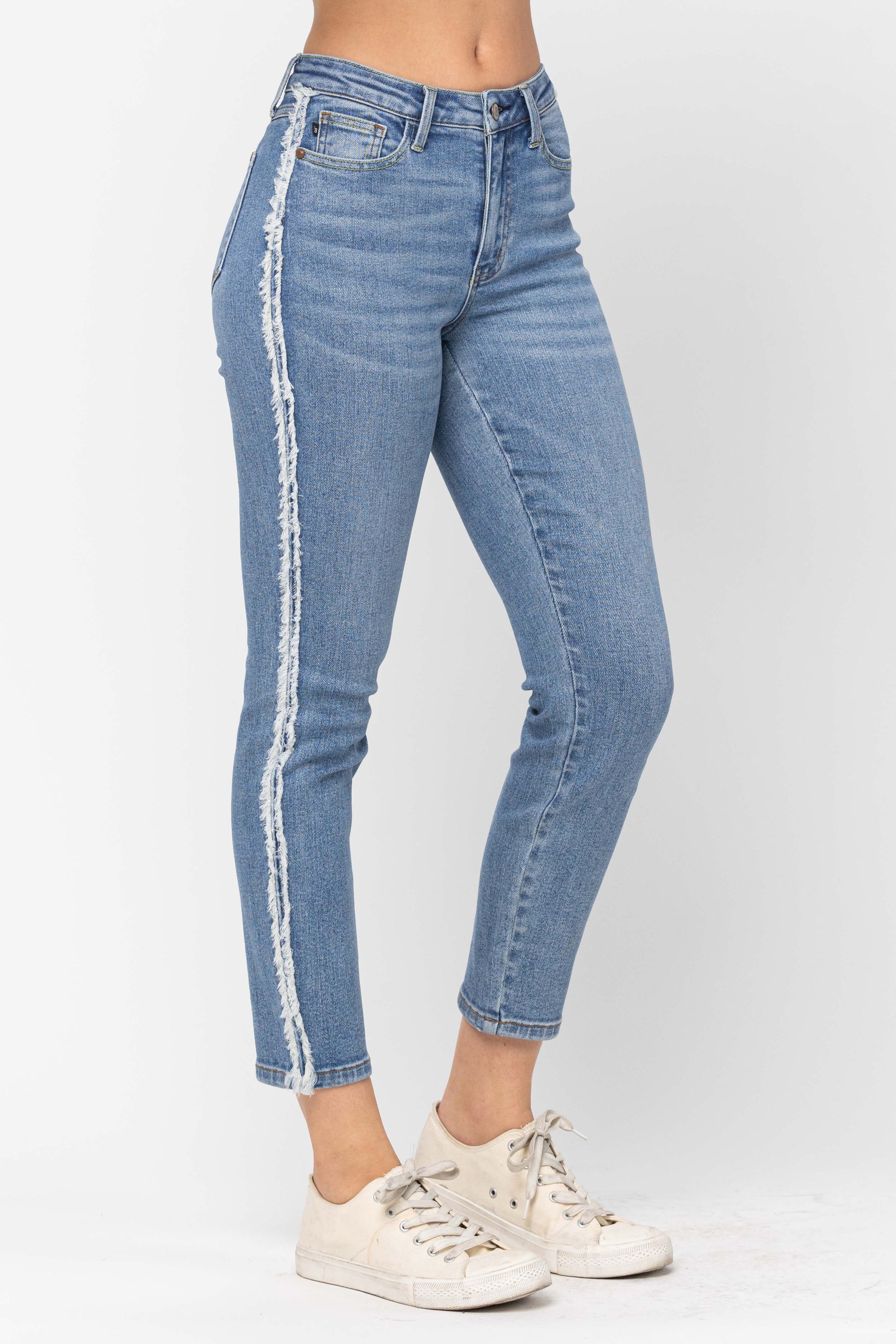 Judy Blue Mid Waist Slim Ankle with Frayed Side Seam Denim