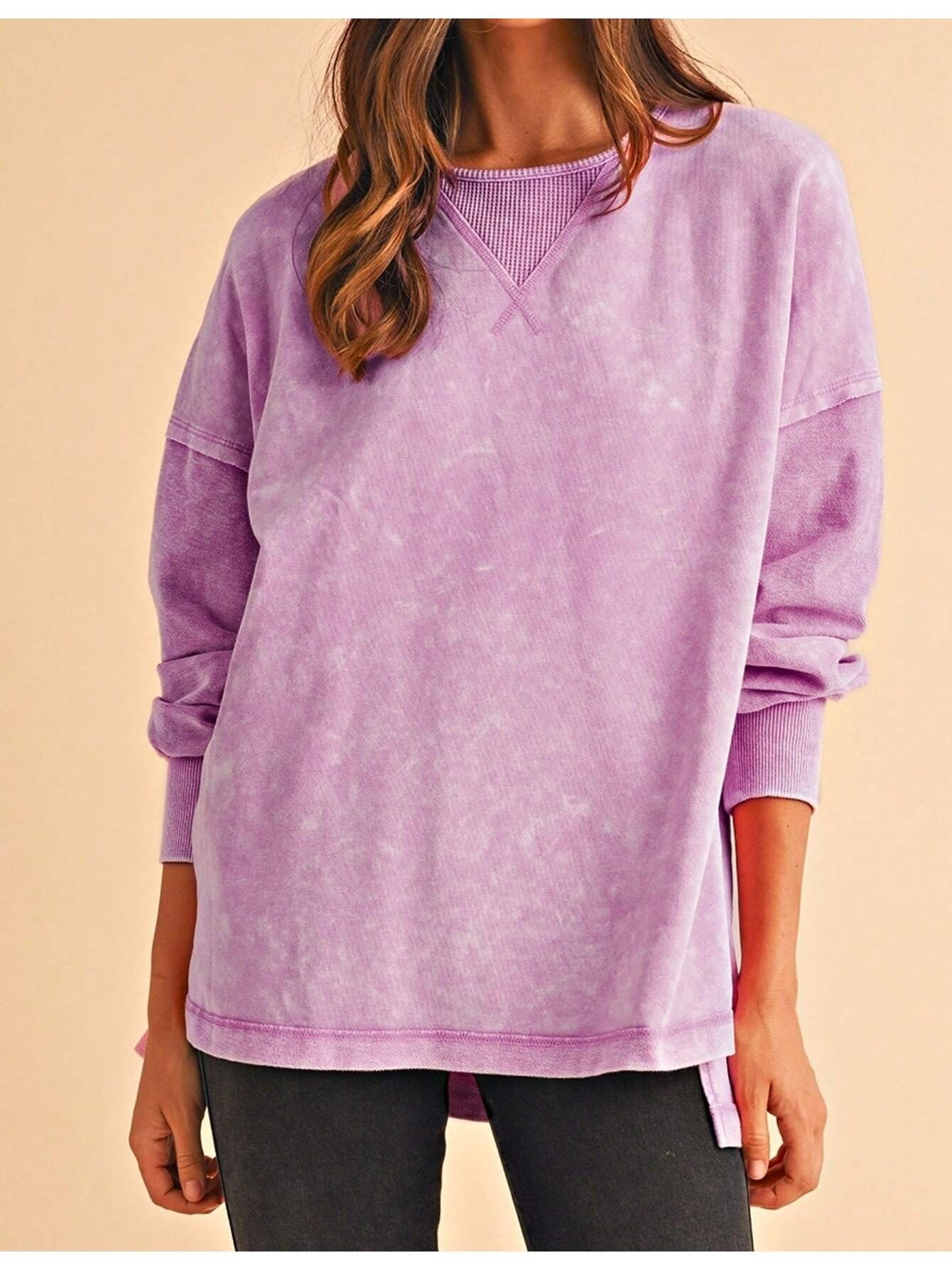 Dive into Dreamy Comfort with Our Cotton Lilac Acid Wash Sweatshirt!