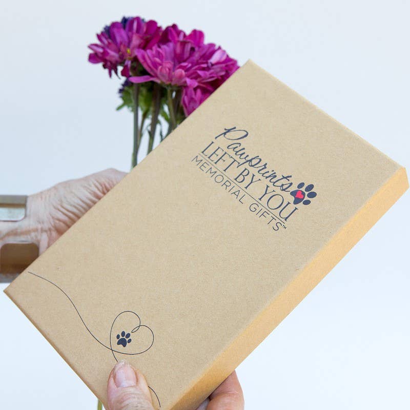 The ornament is thoughtfully packaged in a craft box that includes the full "Pawprints Left by You" poem, adding an extra layer of sentimentality. Its meaningful presentation makes it a compassionate gift for friends, family, or anyone mourning the loss of a pet.