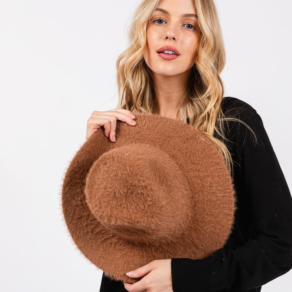 Elevate your accessory game with our Soft Knit Fuzzy Panama Hat, a must-have for cozy, chic style.