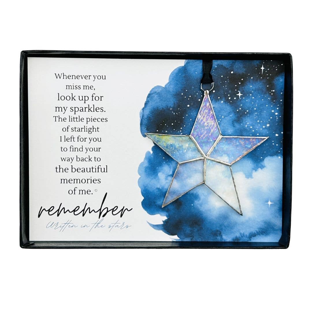Offer a heartfelt gesture of comfort with this stunning 4" iridescent stained glass star, a meaningful sympathy gift designed to bring solace and light to someone mourning the loss of a loved one. This beautiful keepsake is perfect for a Celebration of Life, Funeral, or any occasion where you want to express your care and support during a difficult time.