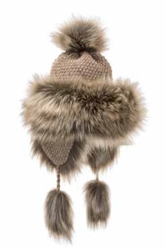 The faux fur detail is the star of this hat’s design, adding a luxurious and cozy touch. The soft faux fur trim not only frames the face beautifully but also provides extra warmth, making this hat both practical and stylish for winter wear. The intricate knit design in shades of beige and brown adds texture and depth, creating a versatile piece that pairs easily with a variety of outerwear and accessories.