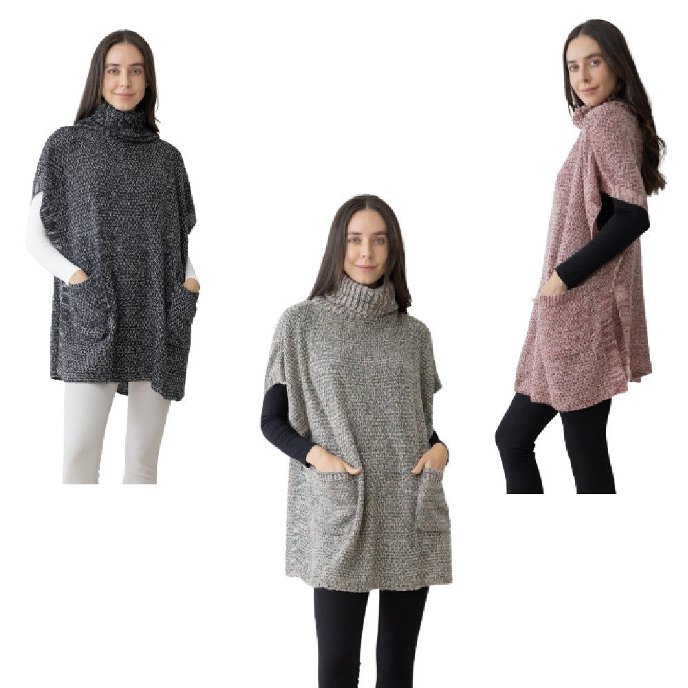 Wrap yourself in the ultimate comfort and style with this Cowl Neck Poncho featuring convenient front pockets. Designed for versatility and cozy warmth, this poncho is the perfect piece to elevate any wardrobe. With a one-size-fits-most approach, it comfortably accommodates sizes 0-20, making it an ideal layering option for all body types.