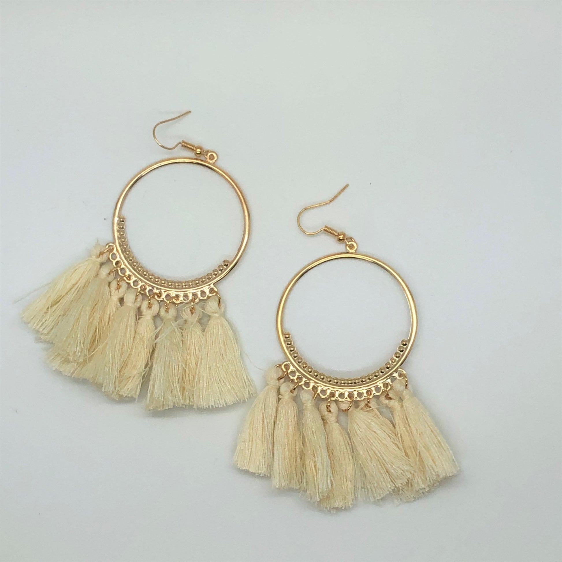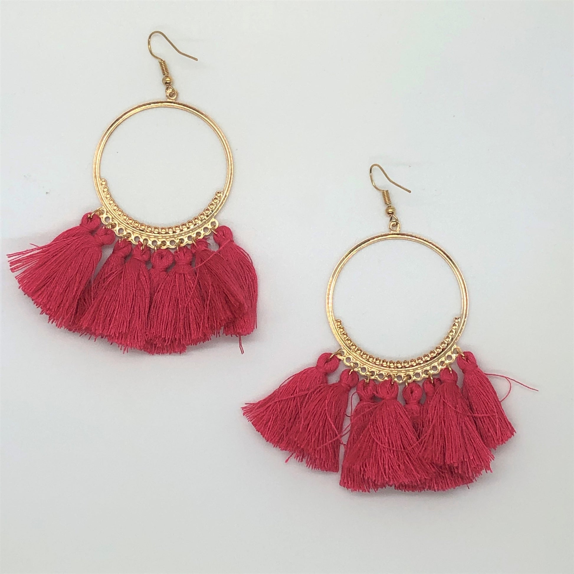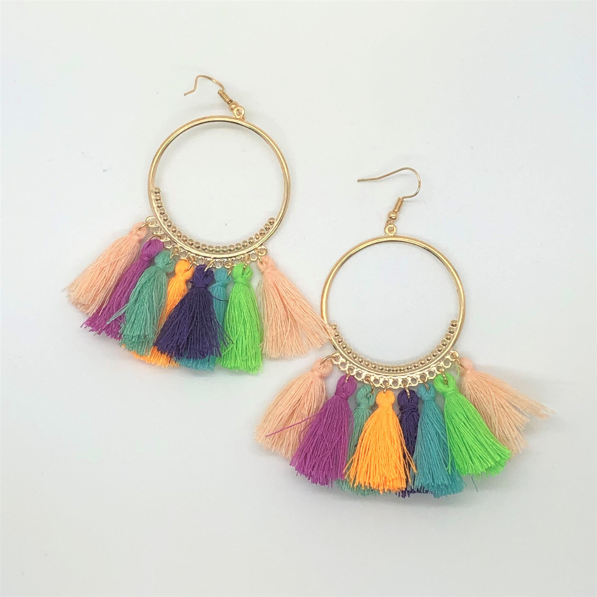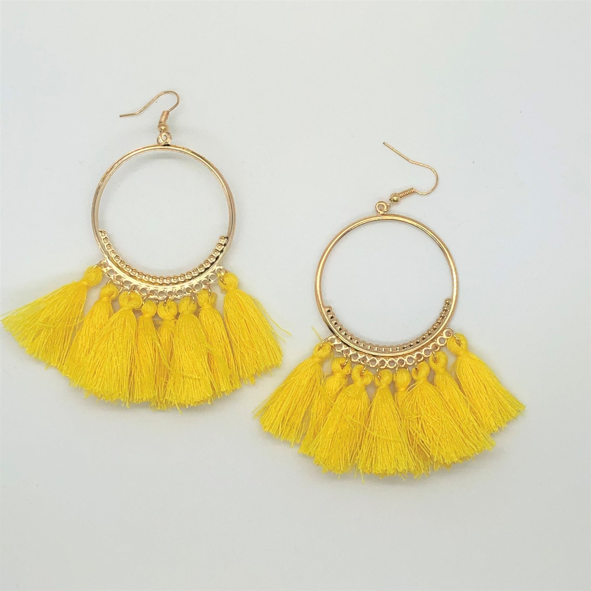 Elevate your accessory game with these Fun and Flirty Tassel Earrings, designed to make a bold statement while keeping things light and breezy. Featuring eight playful tassels that hang from a super lightweight gold-tone open circle, these earrings add a touch of drama and elegance to any outfit, while remaining easy and comfortable to wear all day long. Whether you're heading to brunch with friends or dressing up for a night out, these earrings are the perfect finishing touch to add some fun and flair to your look.
