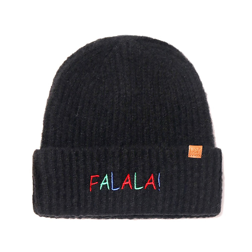 The black base of the beanie provides a sleek and classic look that easily pairs with any outfit. What really makes this hat stand out, though, is the bold and colorful 'FaLaLa!' embroidery across the front. The multi-color lettering brings a fun, lighthearted vibe to the design, instantly adding a festive flair that’s perfect for the holiday season. It’s a subtle yet vibrant way to show off your love for the holidays without being over-the-top.