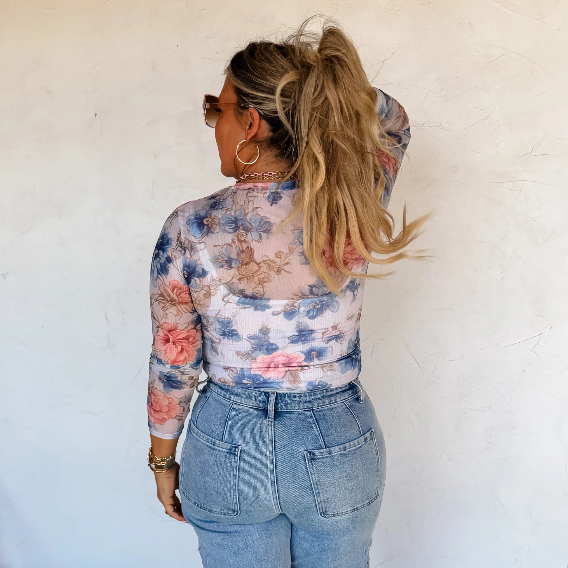 Say hello to your new go-to layering piece for spring and beyond—our Spring Floral Mesh Long Sleeve Crew Neck Top is equal parts flirty, feminine, and effortlessly versatile. Designed to add instant interest to any outfit, this sheer mesh top features a sultry all-over floral print that feels fresh, playful, and right on trend for the season.