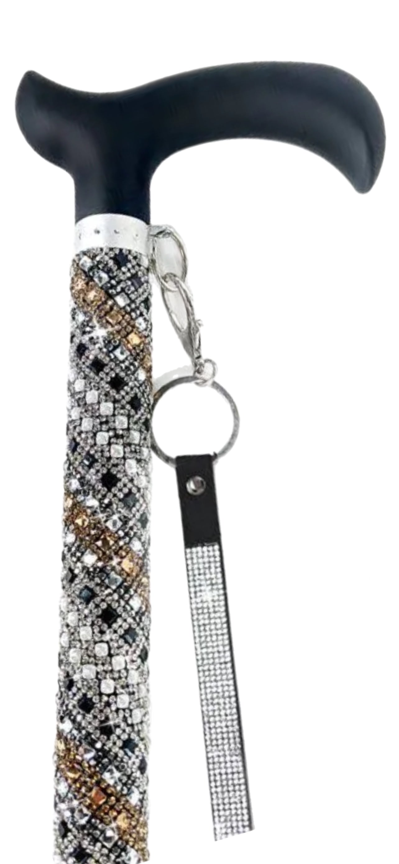 But what truly sets the Sugar Cane apart is its dazzling embellishment of approximately 5000 rhinestones, transforming a simple accessory into a statement piece. Each cane is accompanied by a luxurious black velvet tote bag, making it not just a mobility aid but a symbol of sophistication and flair. Elevate your accessory collection with the Sugar Cane, where every detail is designed with elegance and comfort in mind.