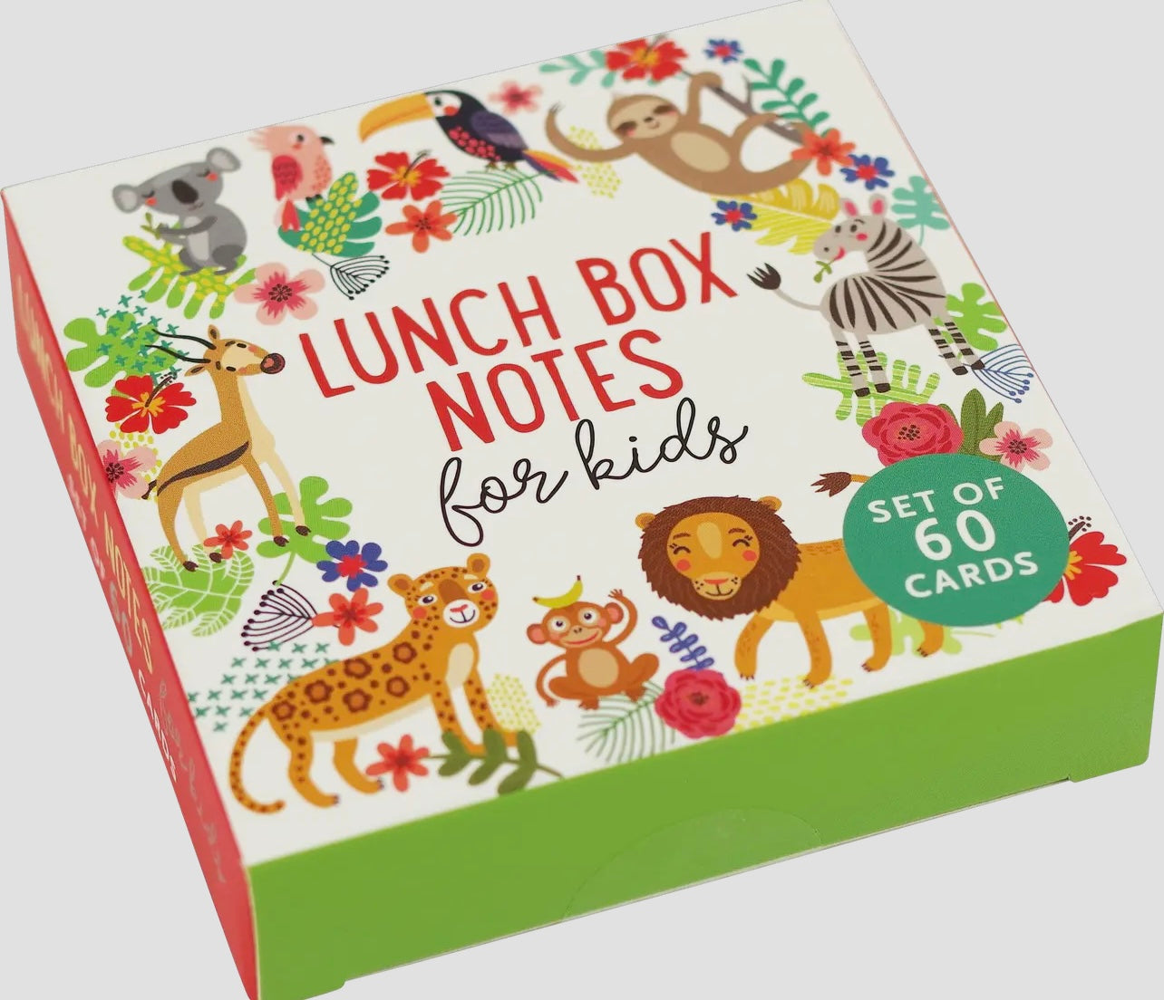 ''BEE amazing!'' ''Shine BRIGHT!'' ''SMILE!'' Brighten their day with Lunch Box Notes , featuring short, uplifting phrases and colorful pictures of favorite animals on small coated cards! 60 different cards. Fronts of cards are coated. Parents can write personal notes on the uncoated card backs for extra positivity and encouragement. Fun full-color designs. Vibrant animal artwork makes every card a delight. Cards come packaged in a reusable box. Cards have rounded corners. Cards measure 3-1/4'' square.