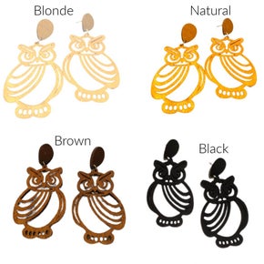 Gorgeous Lightweight Wood Owl Cutout Earrings