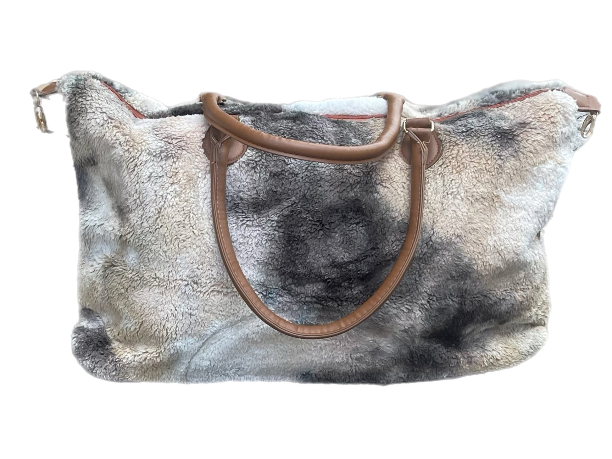 This luxuriously textured tote bag is sure to be one of your favorites! She is large enough to serve as your weekender bag on a shorter trip or she is perfect to be your every day store it all tote! Faux leather top border and handles.
