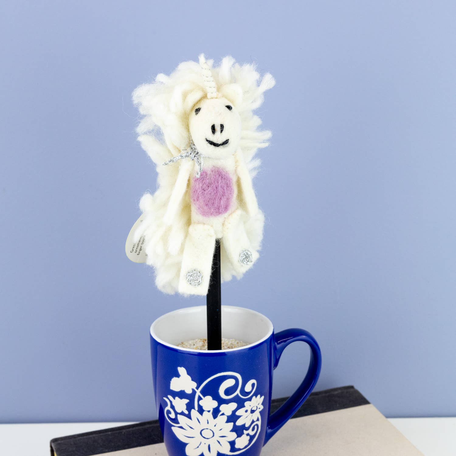 Our handfelted friend is lovingly soft to the touch because it's made with a fine natural wool. Its playful expression and charming details help it come alive and make it appealing, educational and entertaining for young and old. Comes with a 3" cotton loop to hang an ornament, or use it as a pen topper, too! Wild Woolies are designed and made exclusively for dZi Handmade, member Fair Trade Federation. 5.5"h